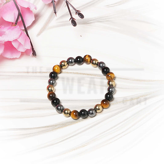 Hematite Black Obsidian Tiger Eye Stone Triple Protection Bracelet