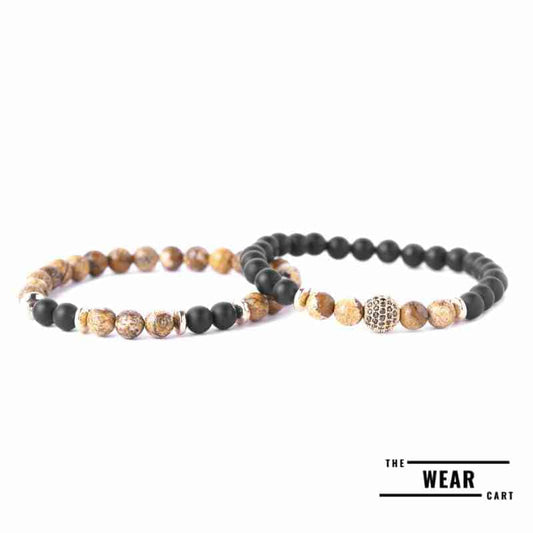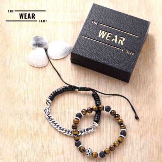 Natural Tiger Eye & Lava Stone Stainless Steel Pair Bracelet