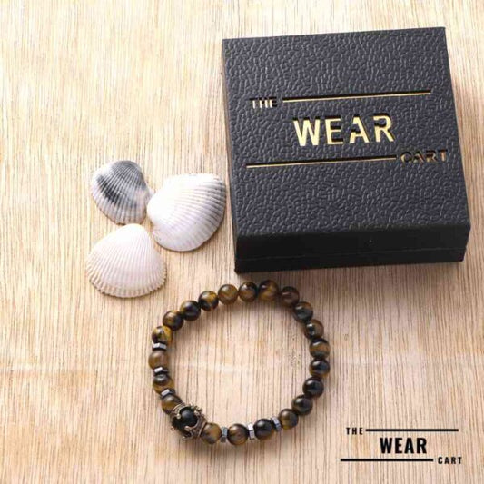 Natural Tiger Eye Stone King Charm Bracelet