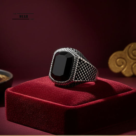 Black Stone Wealth & Protection Vintage Ring – Adjustable